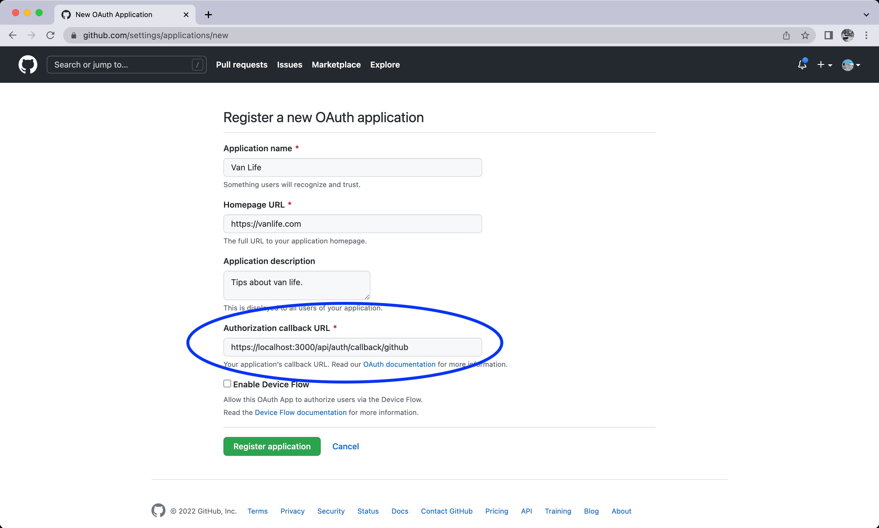 Unfortunately, GitHub is among the providers which do not let you register multiple callback URLs for one application. Therefore, you’ll need to register a separate application in GitHub’s dashboard as we did previously but set the callback URL to your application’s production domain (.i.e https://example.com/api/auth/callback/github). You’ll then also have a new Client ID and Client Secret that you need to add to your production environment via your hosting provider’s dashboard (Vercel, Netlify, Cloudflare, etc.) or however you manage environment variables in production.